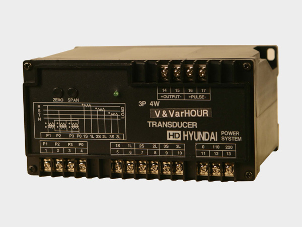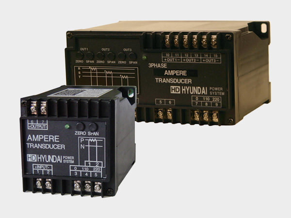 각종 전력설비와 공장의 동력설비에 대해 종래에는 소위 배전반계기에 의한 감시를 하고 있는데 최근 설비에서는 원격 전송에 의한 집중감시가 필요하게 되어 전압, 전류를 그 상태로 원격 전력제어 장치에 전송하는 것이 되지 않기 때문에 전력용 TRANSDUCER에 의한 노이즈에 강한 전기신호(계장용)로 변환하여 DATA loger, computer 및 Programmable Logic Controller(PLC)에 전송가능한 값으로 변환하는 기기입니다.